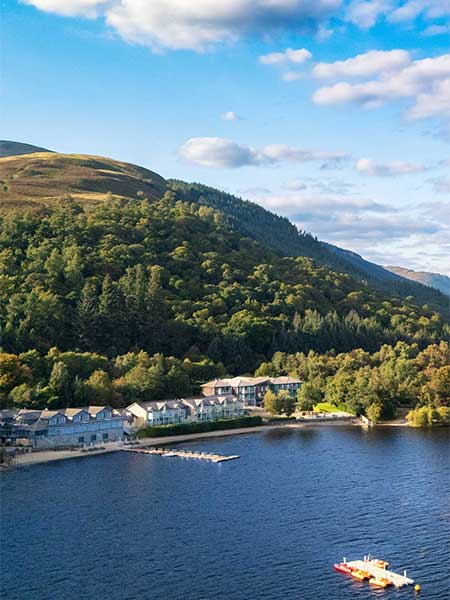 Welcome to the Lodge on Loch Lomond. The Lodge on Loch Lomond Hotel truly is a unique destination located on the beachfront at Luss and enjoying magnificent panoramic views over Scotland’s favourite loch. The hotel’s facilities make it an excellent choice for Leisure, Conference and Wedding guests alike. Located only 30 minutes' drive from Glasgow city centre and with easy motorway routes it really is the perfect destination for escaping the buzz of the city and soaking up the relaxing atmosphere that being beside the loch provides.