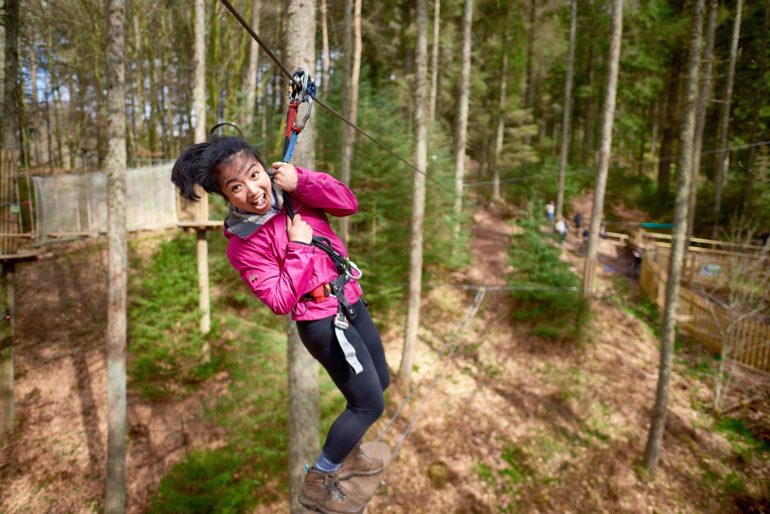 This dual high ropes course is not for the faint hearted. With a choice of route – one more challenging than the other, and one of the UK’s longest zip wires, stretching over 400 metres, you will not be disappointed! The combination of extreme Stirrups, wobbling Stack Line challenge and teetering Half Trapeze are all great preparation for the over 10s looking for the ultimate experience. Take in unprecedented views of the stunning Trossachs National Park, as you zip over trees and a free-falling waterfall. It doesn’t get much better than this!