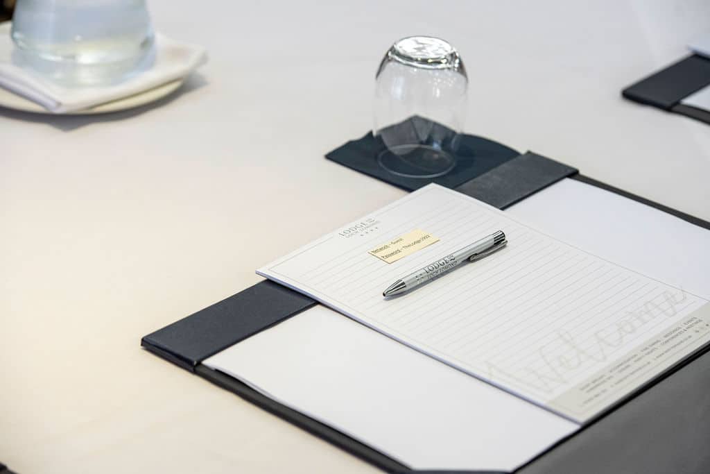 - Delegate stationery - pad of paper & pen Mineral water, Jugs of iced water
