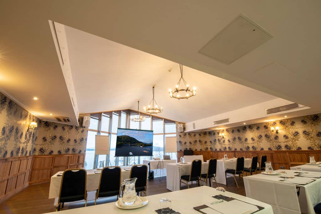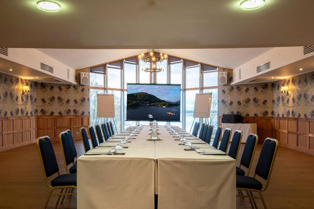 The McMillan suite is our largest meeting room and can be divided into two smaller rooms if required. Located within our Munro building and close to our Glen Lomond Suite which provides further syndicate space. With floor to ceiling windows the room offers stunning views over the loch. It is an ideal Loch Lomond conference and event venue.