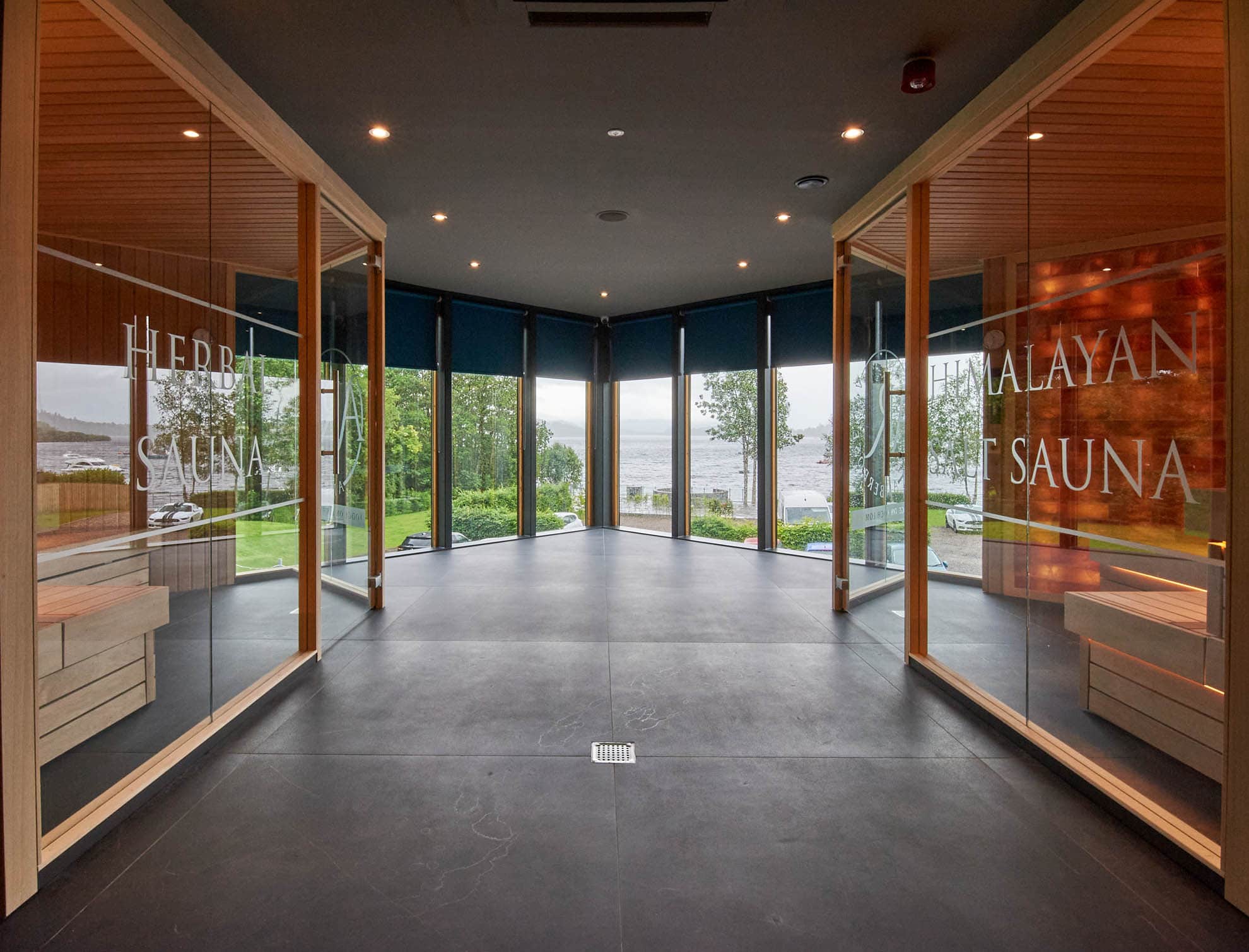 Time in the steam & sauna are perfect before a massage or facial and provides multiple health benefits from improving circulation, reducing stress and lowering blood pressure.  Enjoy the warmth of the heated loungers which are specifically designed to relax the muscles and ease tension.  Breath in the Salt & Herbal Sauna which can calm & detoxify and increase energy levels also great post treatment to continue on the journey of relaxation. There is an Aroma steam room, Hot and Cold Showers, Salt Sauna and Herbal Sauna and Heated Relaxation Loungers – the Thermal Suite itself also enjoys those wonderful views out over Loch Lomond.