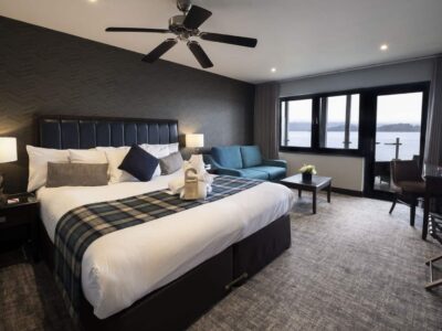 Our Lodge on Loch Lomond Hotel Corbett Room type offers accommodation that is located within the main Lodge hotel building and all have beautiful private balconies with a full glass front offering amazing views over the loch. An ideal Loch Lomond Hotels experience. There are ground floor and upper floor rooms.